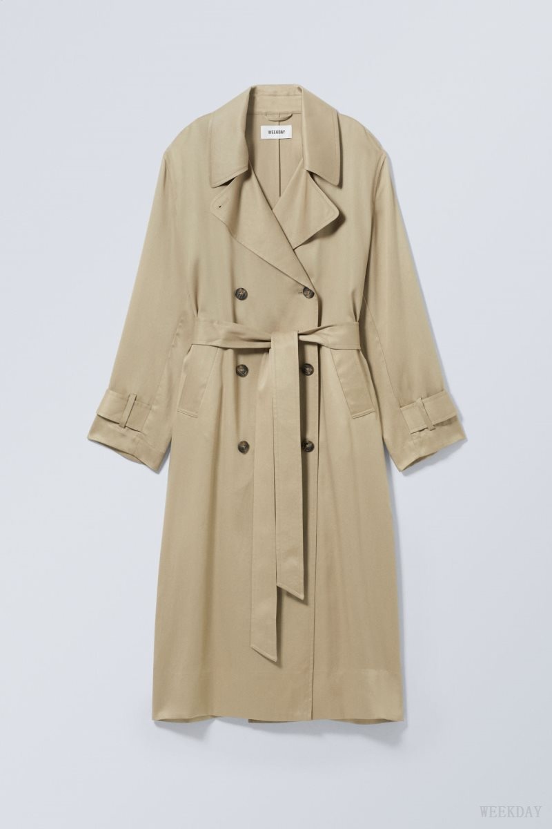 A relaxed double-breasted trench coat made from soft and airy lyocell. This layering favourite is belted, fully unlined with bindings over all visible seams and bottom, has a shirt neck collar with a button underneath, slash pockets, and a vent in the back. Lining: Polyester 100% Shell: Tencel™ lyocell 100% Lining: Recycled polyester 100%